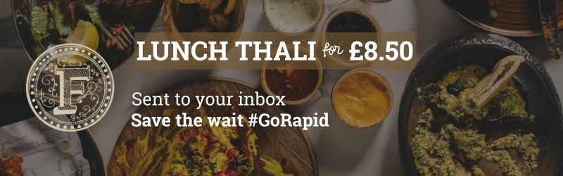 £16.95 per person Available: Up to 6 people Monday to Saturday till 12pm to 3pm A delightful assortment of popular North Indian dishes served on a single platter for an exciting culinary experience All Mains Include Spinach & Kale Chaat, Chana Masala, Vegetable Samosa